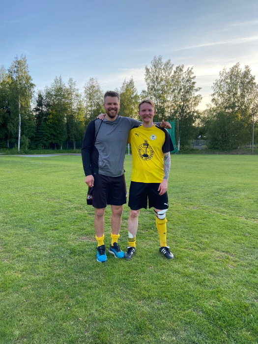 Valkoiset eivät kuitenkaan antaneet periksi vaan luottivat omaan peliinsä ja taktiikkaansa. Paine saatiin ottelun viime hetkillä väkisin vastustajan kenttäpäätyyn ja Ipe lähetti vasemmasta laidasta grogilasin korkuisen syötön takatolpalle, josta Adalia onnistui tuomaan Valkoiset maalinpäähän ottelussa. Heti maalin jälkeen pääsimme hyökkäämään uudestaan ja Iirolle avautui paikka tasoittaa ottelu maalin edustalta. Pusku suuntautui Valkoisten epäonneksi kuitenkin niukasti ohi vastustajan maalin ja Tyhjä Arpa selvisi säikähdyksellä. Se oli viimeinen ja paras paikkamme tasoittaa ottelu. Tuomari puhalsi pelin päättyneeksi ja siinä ne sitten olivat meidän osaltamme. Jalakapallo Peijjaiset vuosimallia 2023 siis. Ne olivat kyllä olleet hyvät kinkerit. Meillä oli kyllä kaikkea mukavaa. Paljon enempää en näiltä peleiltä olisi kyllä edes pystynyt toivomaan. Toki se sanko olisi kruunannut koko viikonlopun, mutta sain kyllä taas ainakin yhtä paljon hyvää takaisin, kuin annoin.