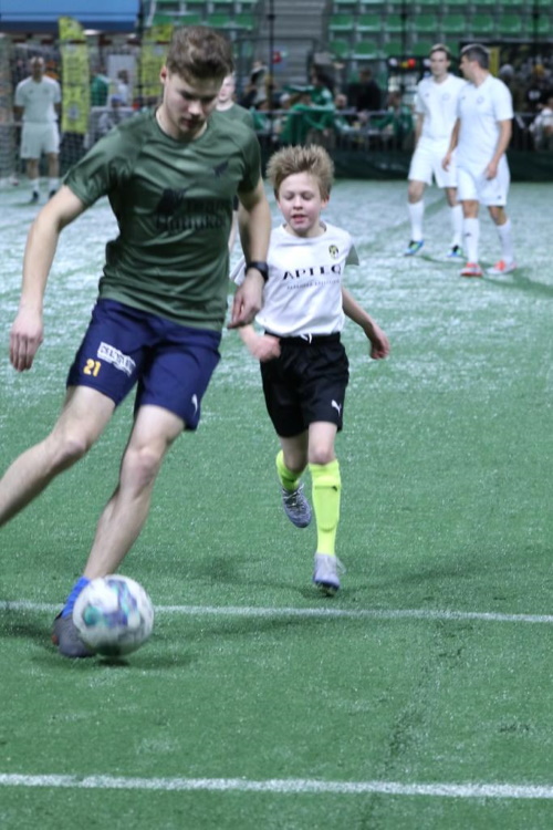 Hiljalleen alkoi pieni, mutta sitkeä joukkueemme olla saapunut hallille ja oli aika aloittaa lämmittelyt. Mukavastihan se pallo pysyi ukoilla koukussa ja kaikki alkoi vaikuttaa melko valmiilta ensimmäistä ottelua silmällä pitäen. Ensimmäisessä ottelussa Valkoiset olivat nostaneet Good Game Akatemiasta mukaan kaksi pelaajaa, jotka olivat alkuvuodesta Valkoisissa ensimmäiset pelinsä pelannut Adalia sekä uutena tulokkaana Isä-Hakkaraisen kupeiden hedelmä Max, joka oli tuleva debytoimaan Valkoisten historian nuorimpana pelaajana, jykevässä 9-vuoden iässä. Olihan siinä, jotain elämää suurempaa, kun sitä järjellä ajattelee. Oikeasti olimme ihan lapsia, kun perustimme tämän joukkueen vuosikymmenet takaperin ja nyt siellä kentällä vilisee jo meidän jälkikasvuamme. Onhan tämä jotain suurempaa, kuin yksi Peijjaisjoukkue. Yhteisö. Legendaarinen sellainen, mutta ei ylimielisellä tavalla, vaan ylpeällä.