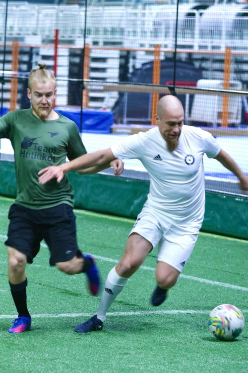 Sitten oli aika mennä. Omat jalat ja pääkoppa tuntuivat ainakin varsin hyvälle. Omalla tekemisellä voitto olisi varmasti otettavissa. Luottamus siihen oli vahva. Ottelu alkoikin Valkoisten pallon hallinnalla eikä aikaakaan, kun sopivasti loukkaantumisistaan Peijjaisiin toipunut Ipe pääsi avaamaan Valkoisten maalihanat turnauksessa. Pientä kimmoketta siinä maalissa oli toki mukana, mutta kaikki lasketaan. Nyrkit kohti hallin kattoa ja siitä se Neulamäen Jordan Letskov sai mukavasti syttyjä pelaamiseensa. Seuraavaa maalia ei tarvinnut pitkään odotella vaan pienen painostusjakson jälkeen Patu pelasi itsensä kauniin seinäpelin päätteeksi maalipaikkaan ja sijoitti pallon takuuvarmasti maalin alakulmaan.