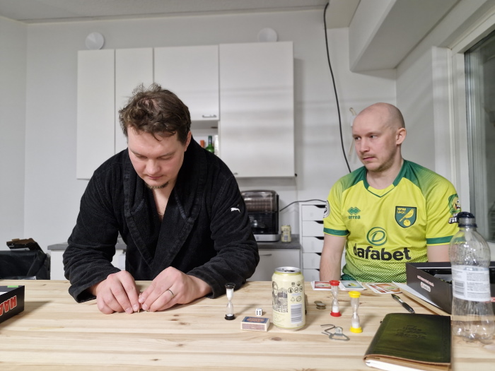 Rasvaisen Lusikan ravittua joukkuettamme oli aika siirtyä Itkonniemeä ja Lämpövelhon saunatiloja kohti. Ne olivat kyllä siis hyvät tilat. Joko Bebeto olet muuten kiittänyt Roopea vilpittömästi niistä? Ilta saunalla kului rennosti seurustellen ja saunoen, tunnelman ollessa vilpittömän seesteinen. Ilmassa oli pelkkää hyvää tuulta. Jotenkin katsoessani tätä porukkaa tulee kyllä mainio fiilis. Hyvin kasvatettuja tai ainakin kohteliaaksi kasvaneita ukkoja kaikki tyyni. On kyllä kiva olla saunalla sellaisten ihmisten kanssa, jotka hengittää samoja arvoja.