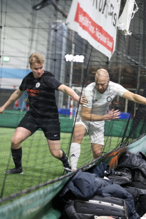Valkoiset saivat hengähtää parin minuutin ajan ennen seuraavaa ottelua, sillä tulevan välieräottelun vastustajaa selviteltiin parhaillaan Hallin toisessa päädyssä käydyssä rankkarikisassa. Siellä oman puolivälieränsä onnistui täpärästi voittamaan Kuopio Internationals, joka koostui nimensä mukaisesti ulkomaalaistaustaisista kuopiolaistuneista jalkapalloilijoista. Vastustaja näytti rehellisesti sanottuna tässä vaiheessa turnausta haastavalta. Nuoremmat, nopeammat ja urheilullisemmat. Niitä he olivat. Kokeneemmat, kollektiivisemmat ja legendaarisemmat. Niitä me olimme. Kaikki oli yhä omissa käsissä. Ensimmäistä kertaa turnauksessa Valkoiset saivat ottelulle unelma-alun, kun Jönssi nosti pallon puolesta kentästä komealla oikean jalan - kyllä luit oikein - nostolla Kuopio Internationalsin maaliin.