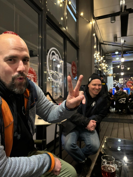Puolenyön aikoihin oli päätösten aika. Kotiin vai kaupungille? Bile-Vömmeli kun olen, suuntasin itse valmistautumaan seuraavan päivän koitoksiin, mutta kyllä sinne kaupungin kirkkaiden värivalojen loisteeseen lähti varsin jämäkkä porukka Valkoisten pelaajia edustamaan joukkuetta aina arvaamattomassa yön silmässä.