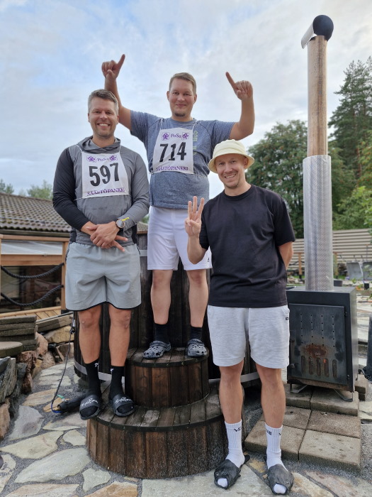 Lauantain pelien jälkeen oli aika siirtyä, saunalle tietenkin. Melkoista kylpemistä on kyllä tämä turnaus, jos rehellisiä ollaan. Montakohan tuntia sitä on tullut itsekin istuttua Peijjaissaunassa pelivuosien aikana? Se olisi kyllä mielenkiintoinen knoppi tietää. Saattaisi muuttua minuutit, tunneiksi ja tunnit päiviksi, jos sitä alettaisiin laskemaan.